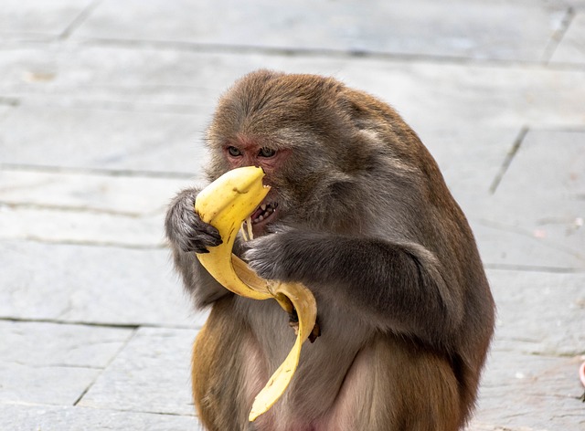 A man was giving bananas to a monkey. The primate grabbed all the fruits he was given and put some in his mouth. When his hands were full, he held some bananas with his toes. His movement was ridiculous as he attempted to carry everything. Eventually, he only got to eat a few fruits as his friends stole the rest.